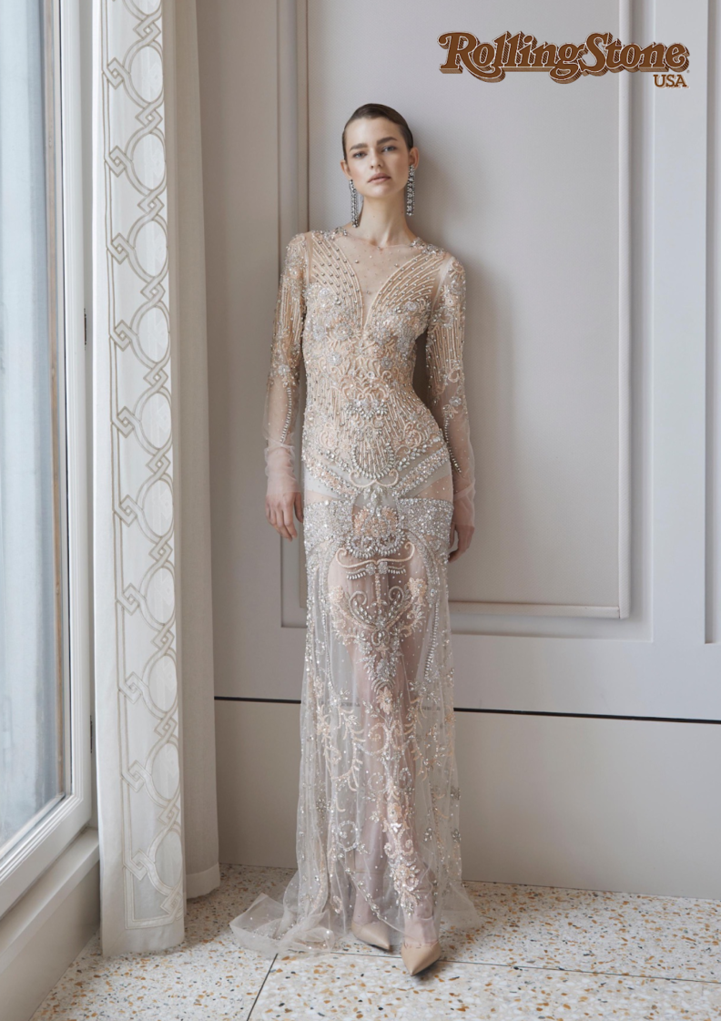 At only twenty-three, Grande founded his eponymous label, stepping into fashion not as a follower, but as a narrator. His early runway moments were already statements—most memorably in Rome, where the iconic Donna sotto le Stelle show at Piazza di Spagna placed him firmly in the public eye. Critics and audiences responded instantly. His designs spoke a clear language: sensuality without excess, elegance with drama, embroidery as storytelling, and luxury as emotion rather than ornament.